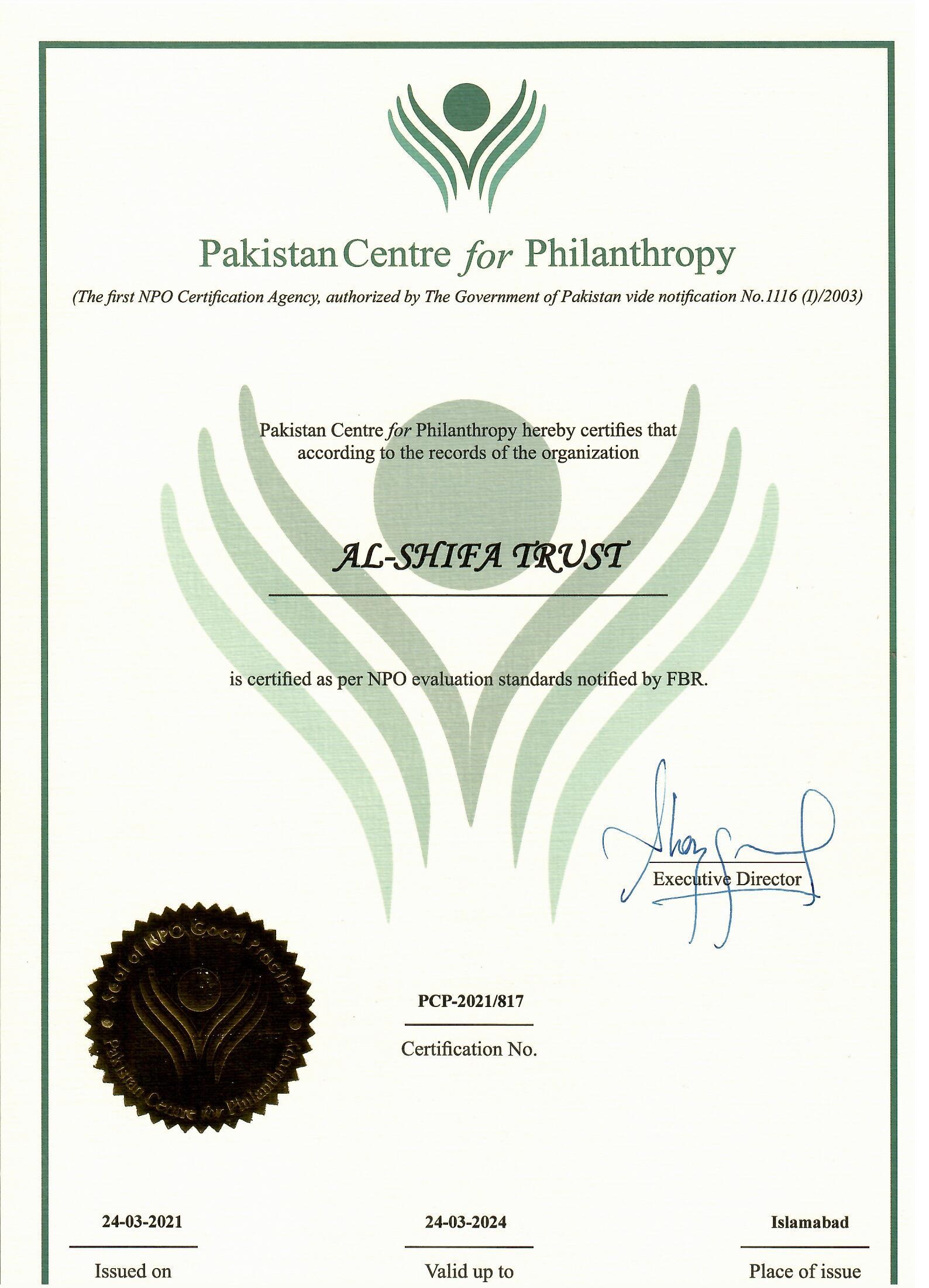 You may support Al-Shifa Trust through crossed cheque in favor of "AL-SHIFA TRUST, KARACHI" or online deposit to our bank account.